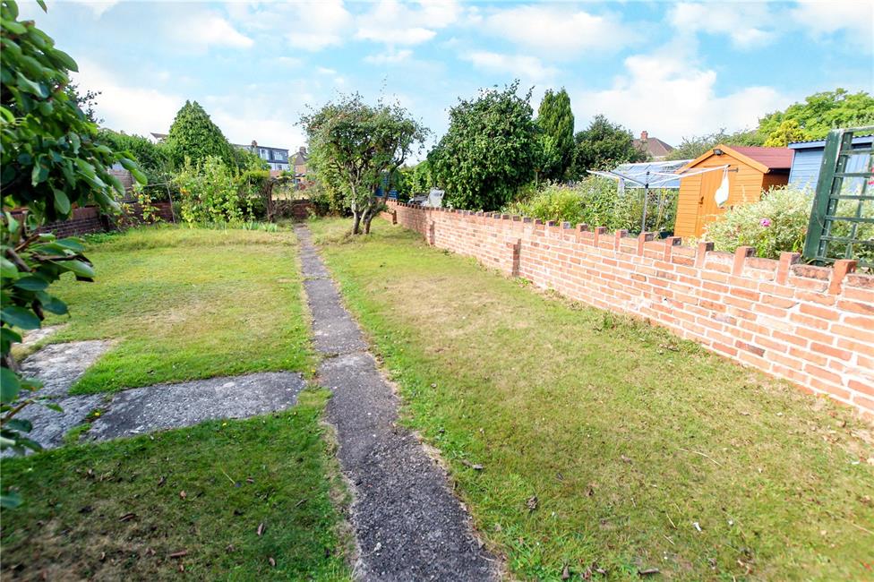 Laid to lawn, over 68ft deep, backing onto unspoilt grassed parkland, enjoying a sunny and open aspect. Shaped hedgerows and flowering plants, fruit bearing trees. Former kitchen garden area at far end. Timber door leading to side drive. Water tap.
