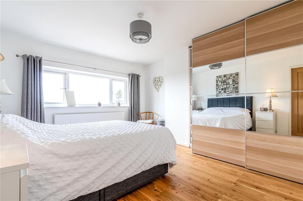 Window overlooking the lawned rear garden and school playing fields, a good size double bedroom, wood grain effect flooring, radiator.