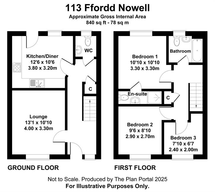 Bedroom 1 10'9" (3.28m) x 10'8" (3.25m)