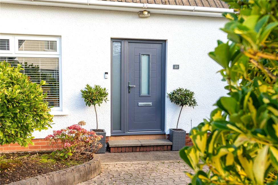 Approached by a composite secure front door with decorative