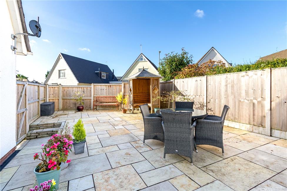 Superb Indian stone large patio relaxation area, ideal for eating al fresco, integral garage.