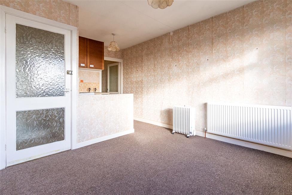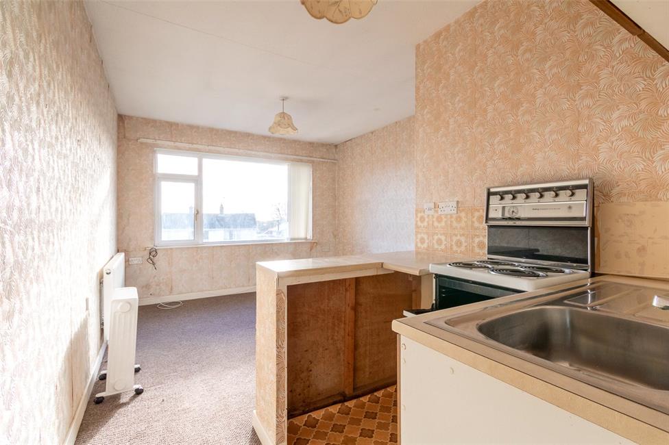 Overlooking the entrance approach and enjoying wide views to the surrounding area, double panelled radiator, stainless steel sink with drainer, neat breakfasting bar, high level double wall cupboard.
