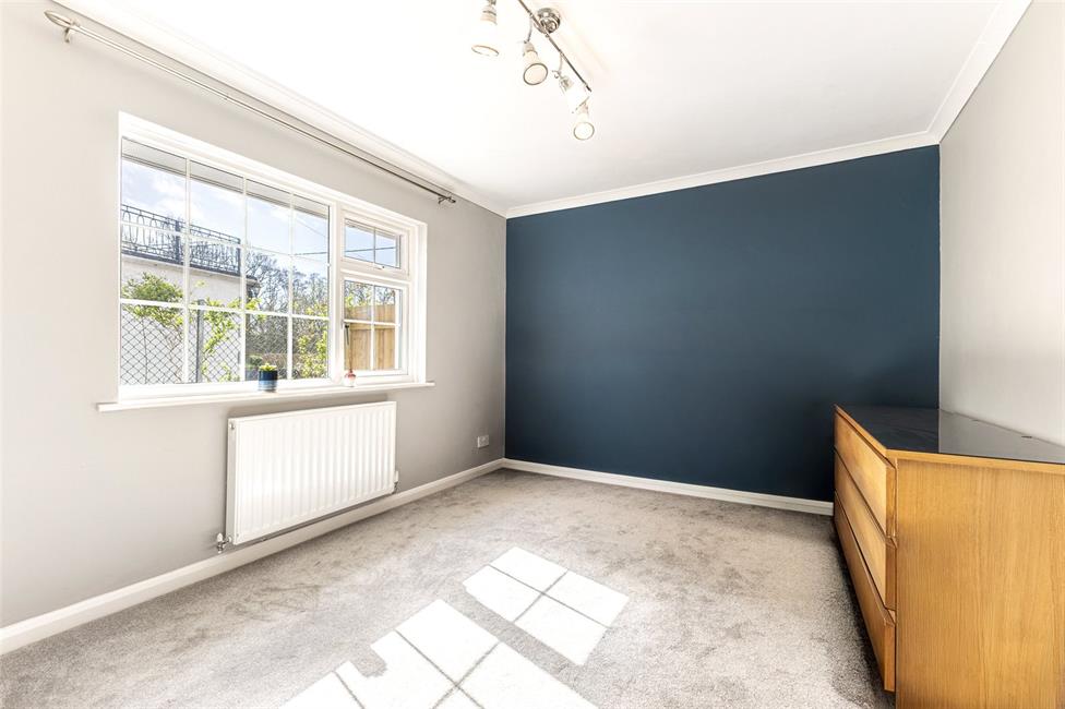 Overlooking the entrance approach, panelled radiator, freestanding wardrobe with