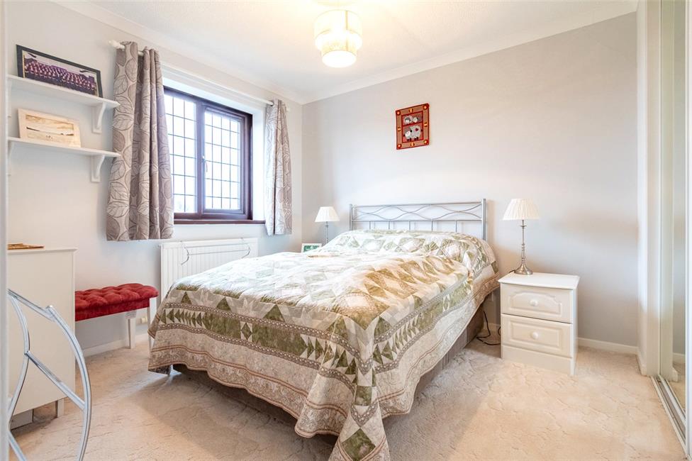 Overlooking the entrance approach and enjoying wide views to the playing fields to the fore, range of fitted wardrobes to one side with mirrored front, panelled radiator.