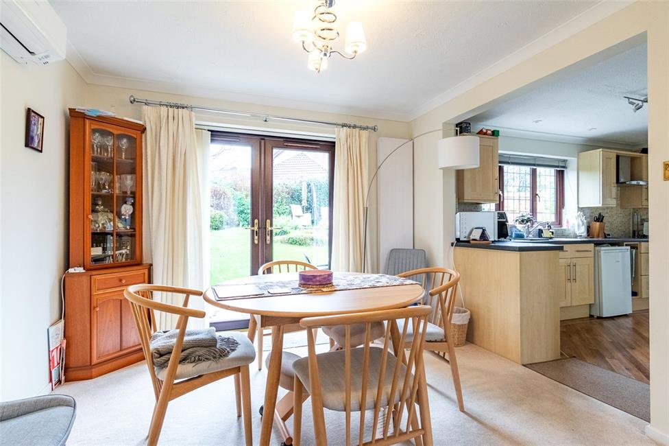 Enjoying dual aspects to the front and rear gardens, feature wood burning fire with ornate hearth and surround, panelled radiator, double glazed French doors leading to the rear patio and garden, Mitsubishi air conditioning and heater unit, opening to