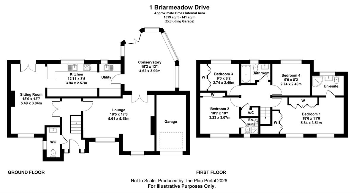Bedroom 1 18'6" (5.64m) x 11'6" (3.51m)