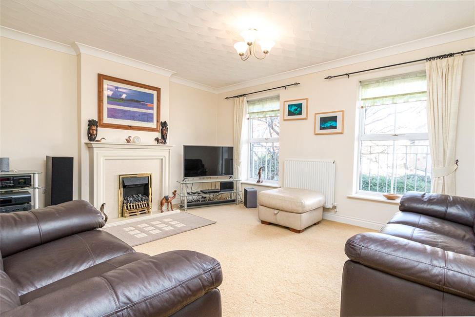 A generous size principal reception room, two windows to front, feature