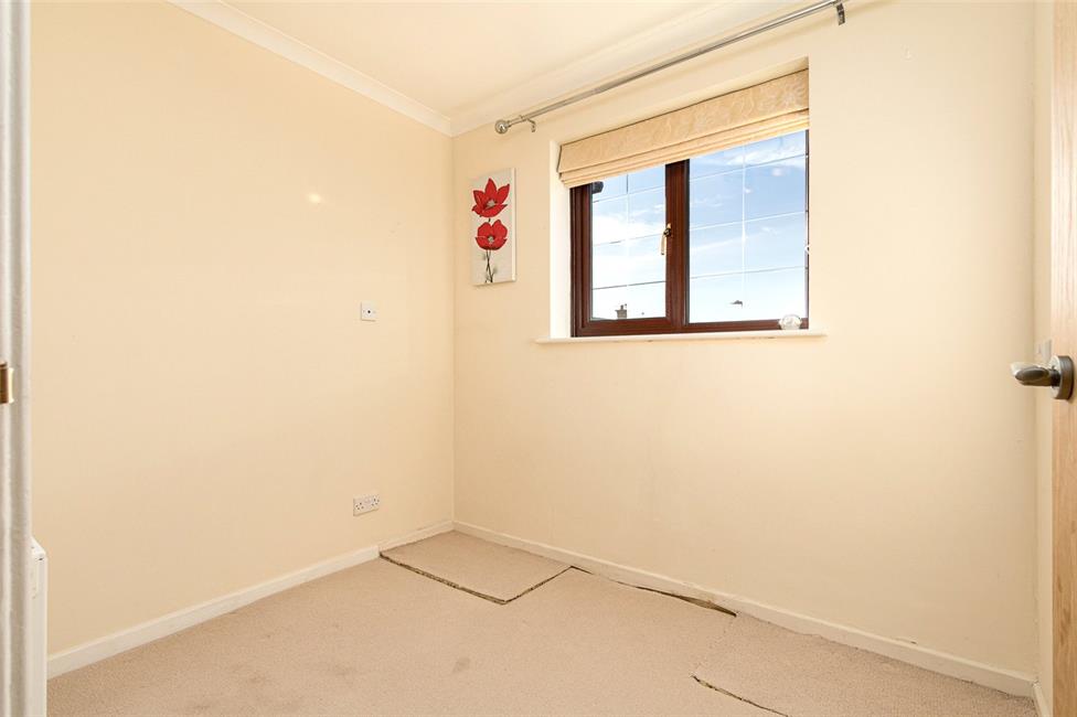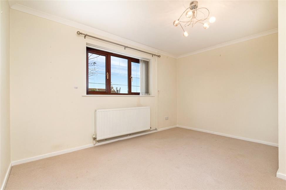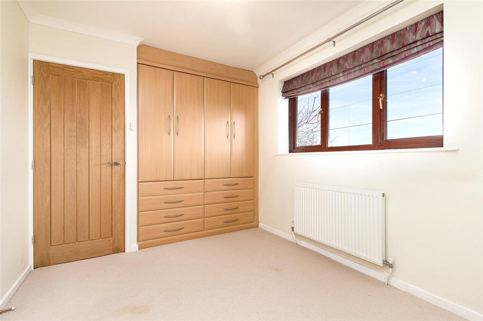 Overlooking the entrance approach, fitted wardrobes to one side, matching bedside cabinets and drawers, radiator.