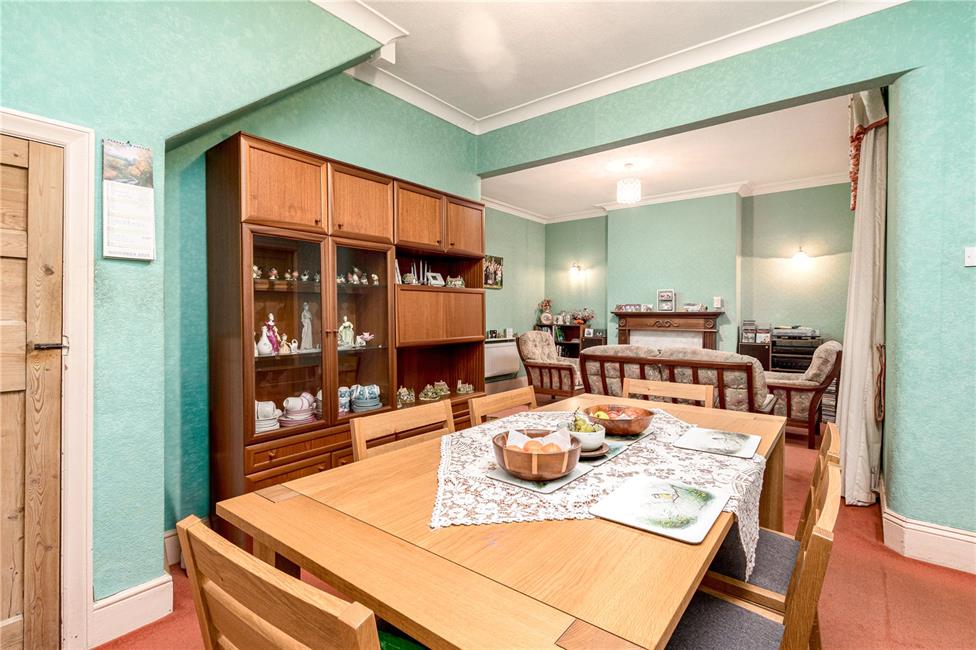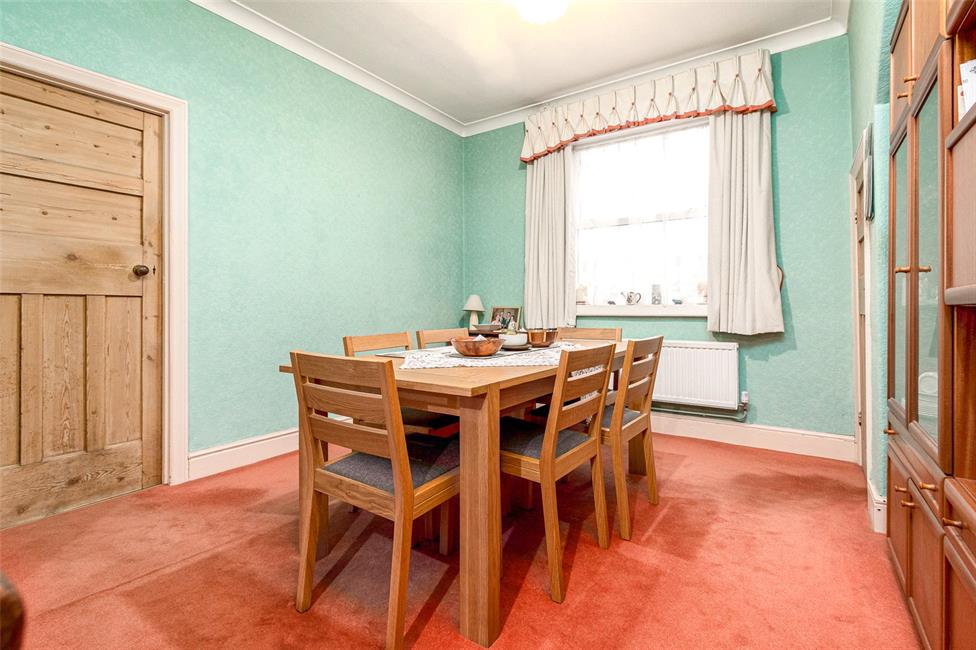 Open plan to the sitting room, ample space for family dining table, coved ceiling, radiator, useful under stairs storage cupboard with opaque window, door to kitchen.
