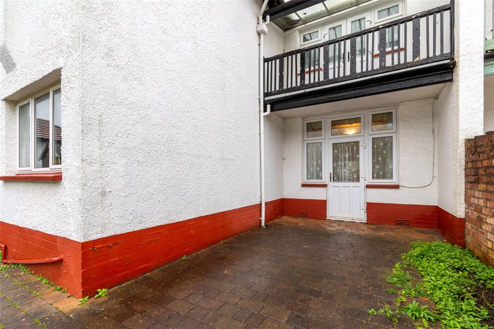 Enclosed with laurel hedgerow to sides and to pavement line, paved driveway with parking for two cars. Gate to side, pathway with lighting leading to the rear garden.