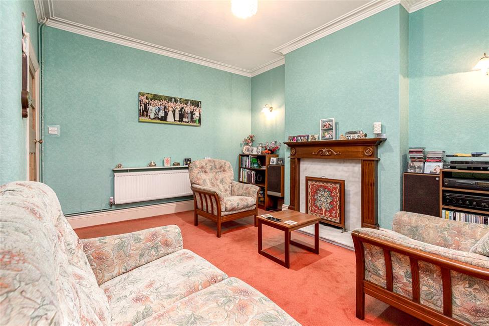 uPVC windows and door to rear, opening onto the covered rear porch and garden, feature fire surround with matching back and hearth (fireplace not currently functional), corniced ceiling, radiator, opening to the dining area.