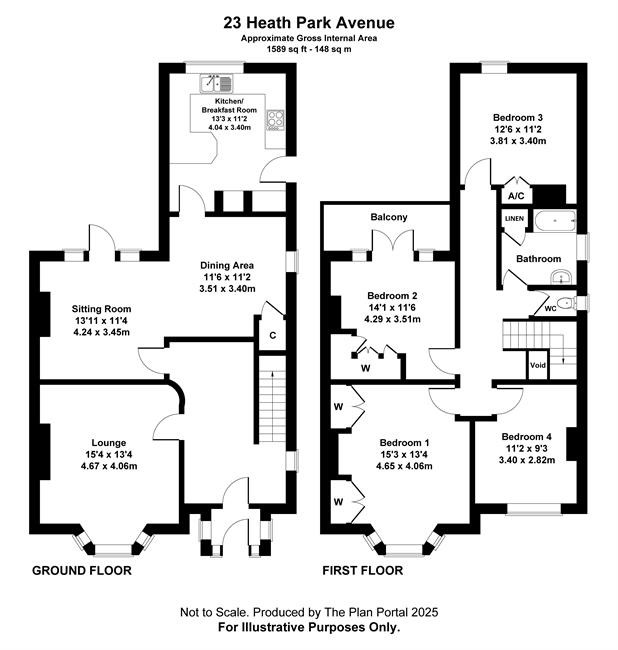 Bedroom 1 15'3" (4.65m) x 13'4" (4.06m) max into bay