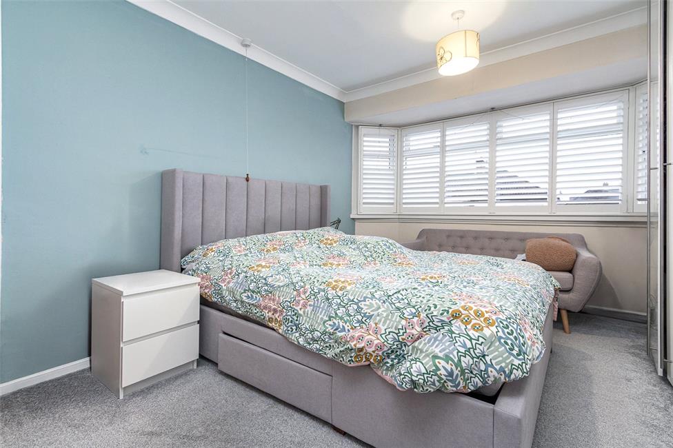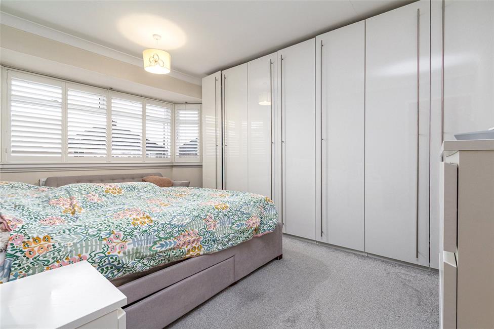 Large wide bay window overlooking the front garden and quiet road with quality fitted window shutters, panelled radiator, full set of fitted wardrobes comprising of three doubles and one single with hanging rails and shelving.