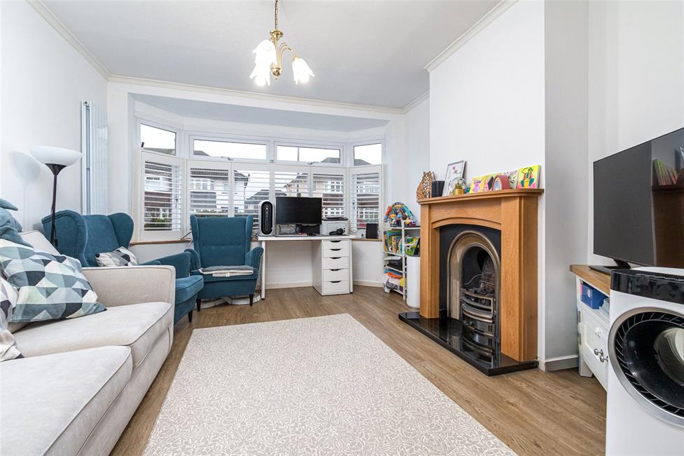 uPVC double glazed bay window overlooking the enclosed front garden and quiet road, quality fitted window shutters, feature fireplace with timber surround, inset coal effect gas fire on a black granite hearth, wood effect strip flooring, contemporary radiator, master Broadband point, square opening to dining room.