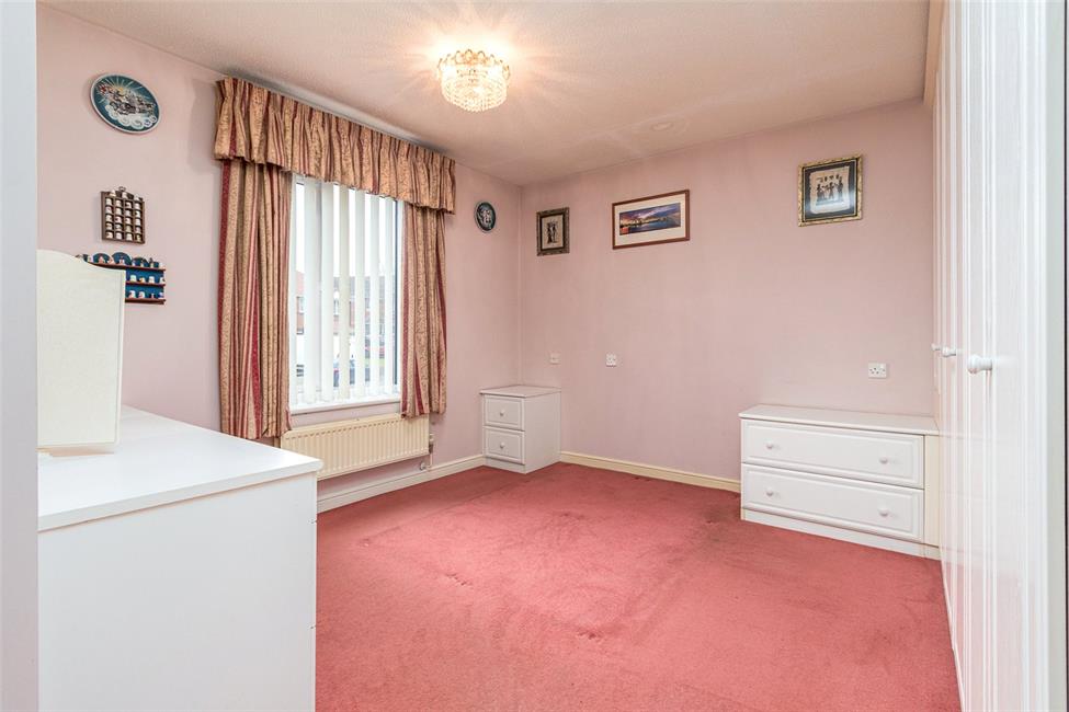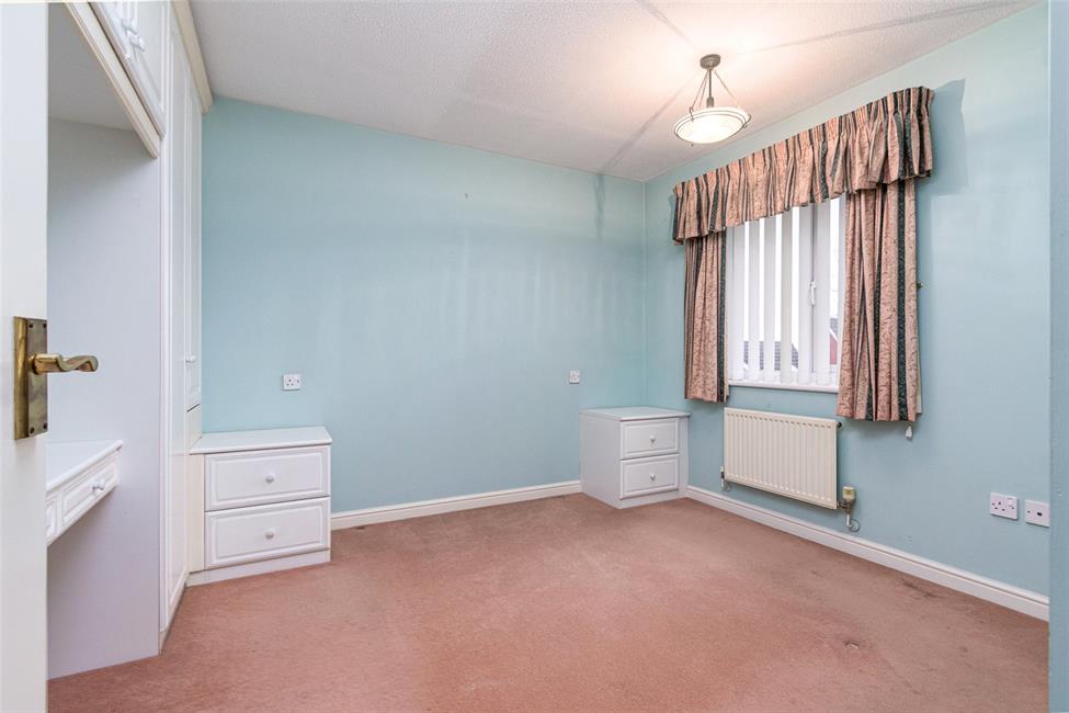 Aspect to rear, a second double bedroom, range of fitted wardrobes to one side with hanging rails and shelving, matching bridging unit and dresser, bedside cabinets, radiator.