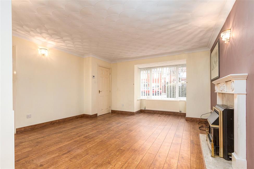 Square bay overlooking the front, a good size lounge, two radiators, feature fire surround with coal effect fire (not functional, gas point capped), further window to side, useful under stairs storage cupboard, archway to the dining room.