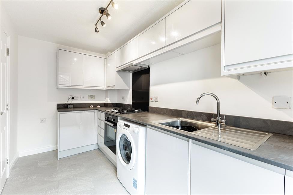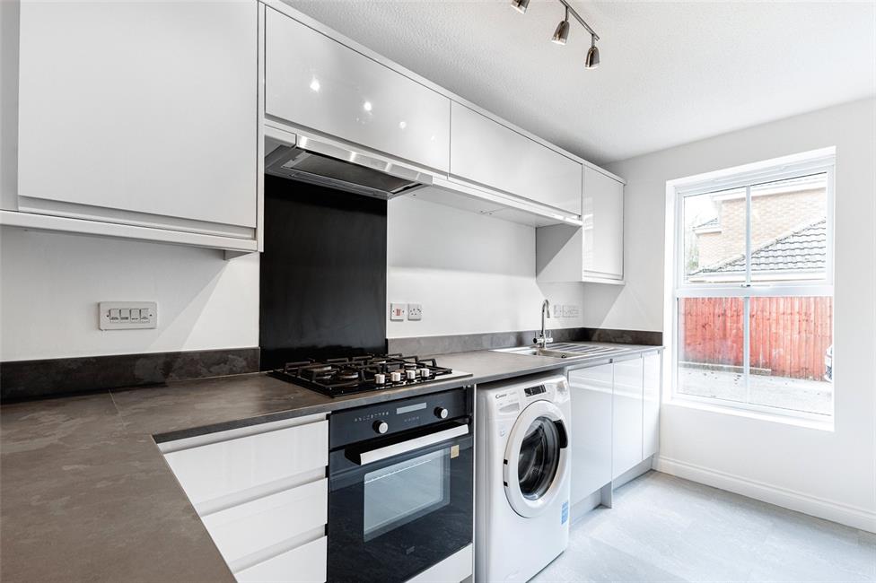 dishwasher, space for upright fridge/freezer, window to front, radiator, vinyl