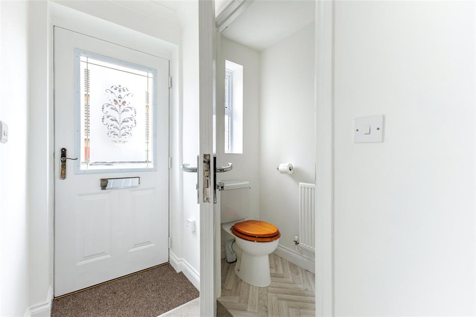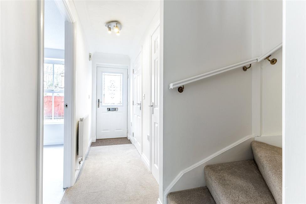 Approached by an entrance door with glazed decorative insert to upper part, leading