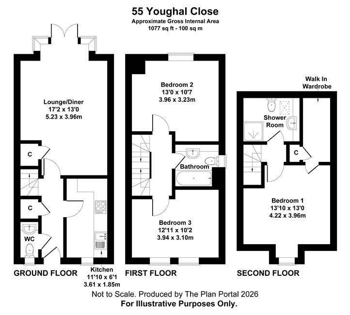Lounge/Diner 17'2" (5.23m) x 13'0" (3.96m) overall