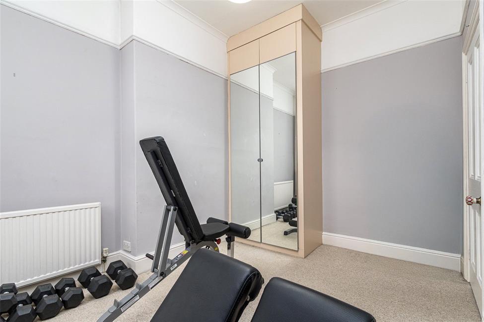 Third genuine double bedroom, double glazed window to the rear, radiator, coved ceiling, picture rail, high level skirting boards, built-in double wardrobe with mirrored doors, hanging rail and shelving.