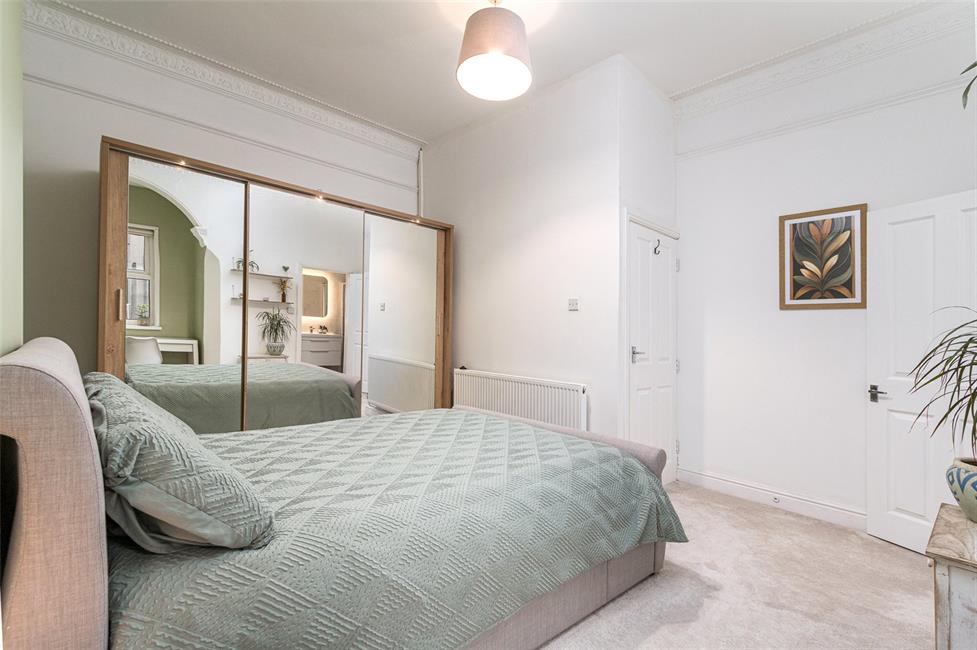Deep central hall, 16ft bay fronted lounge, fitted kitchen/diner, two good size bedrooms, luxury en suite shower and quality family bathroom. Many character features retained including tall corniced ceilings and decorative tiled flooring.