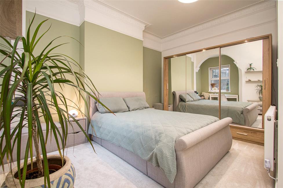 uPVC double glazed window overlooking the rear garden, feature decorative arch with corbels, decorative corniced ceiling, panelled radiator.