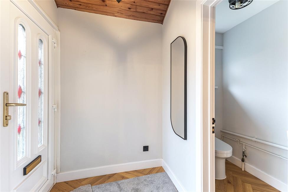 Approached by a wood grain finish uPVC front door with double glazed inserts, leading