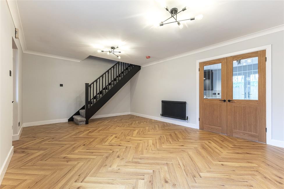 approach, quality herringbone vinyl flooring, tubular radiator, single flight staircase to
