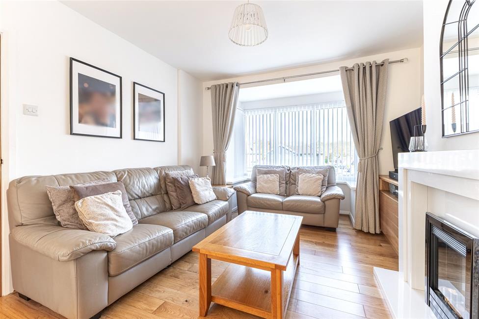 Approached via a quality composite entrance door with opaque arched insert to upper parts leading onto a central hallway with full turning staircase to first floor landing, radiator, quality wood engineered flooring.