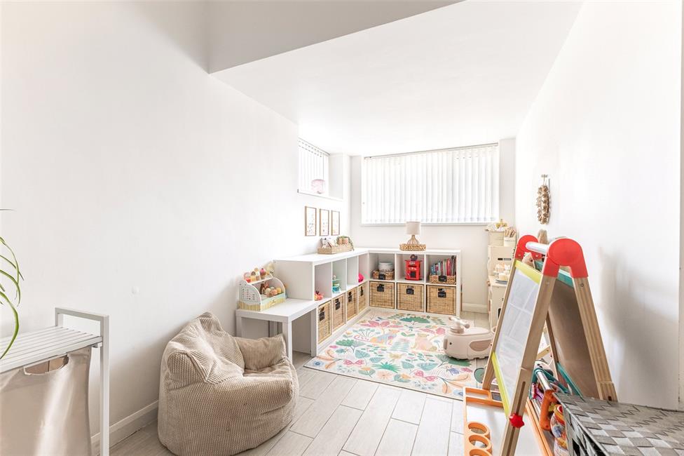 Aspect to front and opaque window to side, quality tiled flooring, TV point, radiator, range of cabinets and oak worktops to one side with space and plumbing for automatic washing machine and condensing tumble drier.