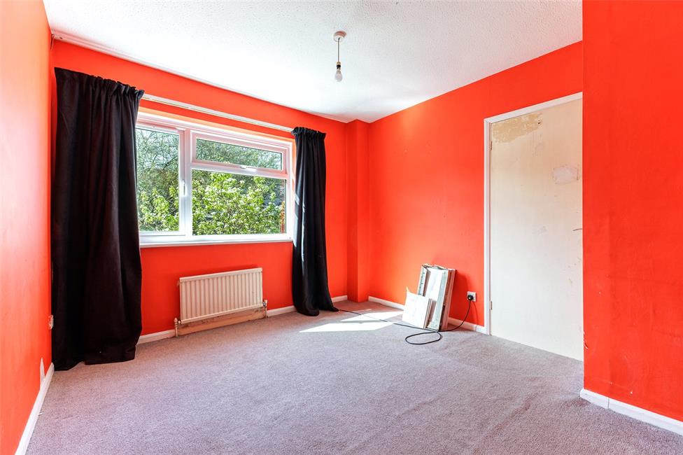 Overlooking the front garden enjoying distant leafy views to the fore, panelled radiator.