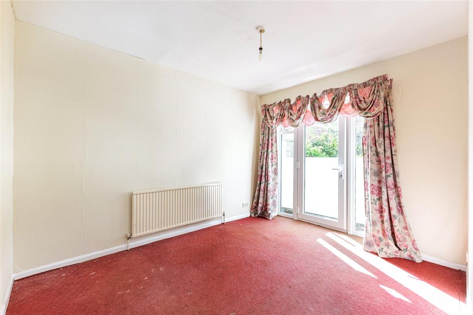 Double glazed French door and matching floor to ceiling side windows overlooking the rear garden, panelled radiator.