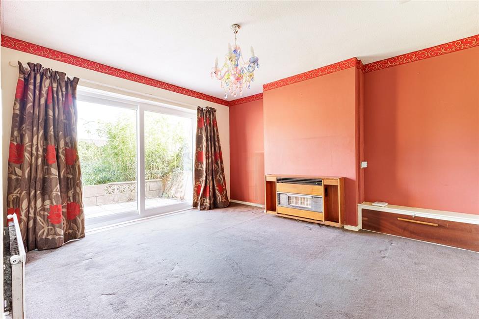 Double glazed sliding patio doors enjoying a pleasant view and leading onto the front patio and garden, gas fire with Baxi Bermuda gas central heating back boiler, panelled radiator.