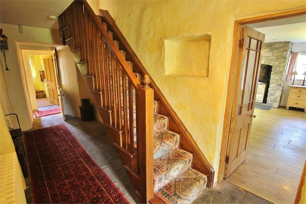 Approached by a wide door leading onto a wide central hallway with single flight staircase to first floor, flagstone flooring, colour washed walls, tubular radiator, inner door leading to inner hallway.